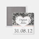 En magnet för att spara datumet med den vackra dammutformningen stil med blommönster, duvfåglarpar och vit svart rosa färg.