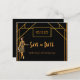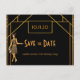 Elegant faux guld och glam för 1920:s stil temat 50:e (eller någon ålder) födelsedagsfest! Födelsedagsfesten Art deco stil Spara datumkortet i faux guld och svart för en glamorös firande. Dekorerad med 1920 års stil flapper-flicka och konst deco stil ram. Mallar för ett datum och namn/ålder. Det här kortet finns också i vår butik med vit bakgrund färg på baksidan. Tips! Om du inte vill att det ska se ut som ett vykort klickar du på anpassa, går till baksidan och tar bort delaren och lägger till frimärke.