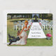 Spara datumet med detta roliga kort med interracialt par. På detta är brudgummen flintskallig eller har rakat huvud. En annan version har hår. Tur att du kommer att bli inbjuden till bröllopet i detta liv! Lägg till parets namn på kortet. Kontakta admin@giftsyoutreasure.com för frågor. Lägg till ett meddelande på baksidan. Brudens och den blivande brudgummens önskelista är redan klar. Lerkulörerna föreställande bruden som drar brudgummen är en riktigt humoristisk kombination. Paret har varit tillsammans ett tag och nu vill hon göra det rätt. De kanske är lite tidiga eftersom gästerna inte har kommit än.