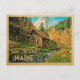 Vintage Maine sparar vykortet Date i roligt i mitten av århundradet stil. Den har ett ryskt skogslandskap med en trähytt och en vatten hjulfabrik och en söt bäck med höst löv för höst- eller sommartid. Den här Maine Save-vykortet är perfekt för ett landsbyggsbröllop eller en natur och ett camping bröllop.