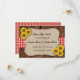 Spara "Date Rustic Solros Red Check with wood and burlap", perfekt för att informera dina gäster om ditt evenemangsdatum! Matchar objektet till samlingen! Inkluderad framsida och baksida.