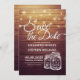 Spara datummallarna för inbjudningskortet för bröllopsmeddelanden - Eleganten Spara datumskriptet och Vintagen Mason Burk String Ljus på Rustic Wood Background. En Perfekt för din stora dag. Alla textstorlekar i stil, färg, kan ändras för att passa dina behov!