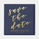 NewParkLane - Magnet, med 'Save the date' i elegant faux-guld-skript, typografi, mot en marin blå bakgrund. Enkel att anpassa i Zazzle med egen namn, datum eller annan text för personlig. Alla textstorlekar i stilar, färg kan ändras för att passa dina behov. Du kan också ändra bakgrunden till färg till valfritt färg. En elegant som påminner dina gäster om din bröllop-dejt! Kolla in den här Guld-penselskriptsamlingen för matchande objekt. Har du någon särskild personlig design för önskemål? Kontakta mig gärna.