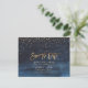 Skrivna i samlingen Stars sparar du datumet med blå vattenfärgsbakgrund. Modern Guld-skript Spara datumet, med DIY Background färg. Copyright © 2016-2019 Bombino Designs.