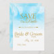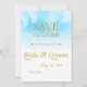 Under Räddningsdatumet i Handflatan Himmel är datum ett tropiskt himmel-blått vattenfärg med accenter från handflatan träd. På baksidan samma vattenfärg himmel blå och handflatan träd med initialer för bruden och trimmen.