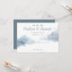 Spara datum Vinter bröllop Förlovningskort skapat med en akvarell vinterscen i nyanser av blått. Texten innehåller: Spara datum, Brudens och Brudgummens namn, Giftar sig, Bröllopsdatum och Formell inbjudan följer. Baksidan har en matchande blå bakgrund. För att anpassa, lägg bara in dina uppgifter i vår enkla mall och ersätt provtexten. Detta Förlovningskort finns tillgängligt som en nedladdningsbar fil.