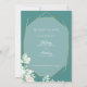 Bröllop spara datum | illustration av Wildblommor och Berries omger ett helt vitt, guld-kantat geometriskt ram - vilken bakgrund som helst kan färg användas, välj alternativet anpassa ytterligare och ändra bakgrunden till färg - vi valde teal. En mycket vanlig Spara datumkalligraftexten längst fram på detta kort - på baksidan är en kombination av modern chic och kalligrafiskript typsnitt skrivna detaljer i vitt. Design av BarefootBride™