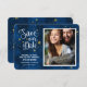 Starry Night-designen är en elegant som innehåller gyllene stjärnor och bubblor över en djup vattenfärgsbakgrund. Lägg till ditt favoritfoto och anpassa textinformationen för underbart sparande av det datumpapper som ska imponera! Anpassa det ytterligare genom att ta bort fotot och lägga till mer text. Det här sparar datumdesignen är perfekt för helgdagar, bröllop eller andra speciella händelser.