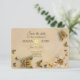 Lägg märke till din speciella dag i stil med det här fantastiska Spara datumkortet, som är vackert försedd med guldblommor och ömtåliga fjärilar. Elegantens design visar värme, romantik och tidlös charm - perfekt för att ange tonen för det kommande bröllop. Med lyxiga accents från guld och graciösa smörflygdetaljer som symboliserar kärlek och nystart, kan inbjudan era gäster markera sina kalendrar på det mest förtjusande sätt. En vacker keepé som de kommer att uppskatta och en perfekt prelude till ditt oförglömliga firande.