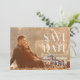 Personlig Spara datumfotkorten med finare-blommigt snurrar vitt textöverlägg, bäst för mörk färg och svart och vit bild-bakgrund, i trendigets hipster-typografi. Coola men klassigt med en sofistikerad och modern roligt för par som vill skapa ett minnesvärt tillkännagivande av förlovningen. Lägg till ett eget foto med utfall i fullt och anpassa texten. Klicka på knappen Anpassa om du vill justera storlek text eller ändra stil om du vill se ett mer traditionellt eller klassiskt utseende. Enkel, men snyggt elegans till rabattpriser för frugaltar på en budget. Kontakta oss om du vill att designen ska ändras så att den stämmer överens med ditt brudens sida färg-tema, eller om du behöver hjälp med att skapa dina egna unika inbjudningar av typen "one-of-a-natura". Obs! Plocka ditt eget färg för rand på baksidan i anpassningsläge för att matcha nyansen på bilden på framsidan, eller så kan du ta bort dem helt och hållet.