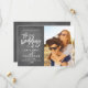 Den här eleganten och det moderna fotot som används för att spara datumkortet har ett vackert penselskript i en faux-kritbakgrund. Besök butiken för att se resten av samlingen från Chicen Typography Guld Suite.