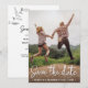 Snyggt Rustic Dubbla åt sidan Spara datumanteckningskortet för foto Bröllop med Anpassade tillbaka till Färg.