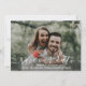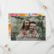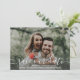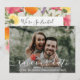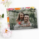 Skicka ut bröllop spara datum i stil med det här vackra kortet med ditt foto och ett vackert vitt skript på framsidan. Baksidan innehåller information om datum som omges av en handmålad vattenfärgsblomma ram. Modern och trendig än elegant och klassiskt - perfekt för ett bröllop mellan vår, sommar, fall eller destination. Photo Kredit: Carly Rae Hobbins, Unsplash