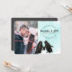 Ices blå vattenfärg och två vinterpenguiner med roligt rundad text, vilket gör att du kan spara bröllop-meddelandet med ställe för ett foto på framsidan och baksidan. Ett stort öppet område på baksidan i ditt val av färg för att lägga till många viktiga detaljer om bröllop på baksidan av detta vackra område, spara datumet med söta pingviner som går tillsammans.