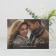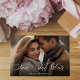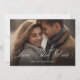 Den här designen har ett enkelt spara-the-date-kort, med ett modernt minimalistiskt stil, för bröllop, med ett svartvitt, en elegant-, klass-, fotomall, med en QR-kod på baksidan, kalligrafi- och elegant-typografi