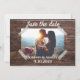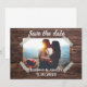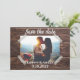 Spara datumfotokortet med mörkens träbakgrund och vita teckensnitt. Bild har till följd att det tejps på träet med tejp. Byt bara ut bild mot fotot och redigera namn och datum för speciella dag. Så lätt!
