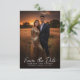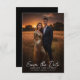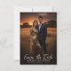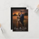 Modern utformning av Eleganten av minimalistisk karaktär. Spara datum meddelande-kort med svart bakgrund och enkel vit text på baksidan och vit text med ditt favoritfoto på framsidan.