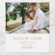 Spara datumfotomärkningen Bröllop Vin. Den här enkla och moderna bröllop vin-etiketten har ett foto på förlovningen.