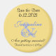 Spara datummagneterna i Bröllop. Söt mellå gultens bakgrund. Anpassa med Bride & Grooms första Namn och Bröllop Datum i svart och blek blå text. Det var trevligt att skicka gästerna i bröllop för att sätta på kylskåpet eller andra magnetiska yta som en trevlig påminnelse om det kommande bröllop-datumet. Originaldesign © TamiraZDesigns.