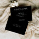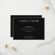 Detta moderna minimalistiska svarta och vita bröllop spara datum-kort har vit skripttext på en guthisk svart bakgrund. En enkel och klasslig design. Anpassa datuminbjudan med din bröllop-information och använda "redigera med designad verktyg" på Zazzle för att redigera all text, typsnitt, bakgrundsbild färg, färg och alternativ för att ladda upp och lägga till ditt favoritfoto på inbjudan baksidan. Om du vill ha fler gotiska, svarta, inspirerade inbjudningar till bröllop spara datum kan du gå till vår svarta Spara datumsamlingen på https://www.zazzle.co.uk/collections/black_wedding-119904410604452684