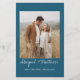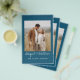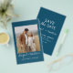 Budgetera Anpassa den här Mörken Teal and White One Photo Simple och Elegant Dubbla Sided Spara datuminbjudan med ditt meddelande och information. Den här inbjudan till chic innehåller handskriven manustypografi för snyggt och elegant för att det speciella Bröllop ska kunna vara firande.