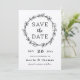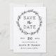 Spara datumkortet med en enkel och rustik olivkrans. Framställd med papper bakgrund. Utformningen kan vara personlig med olika typsnitt, färg eller pappra typer.
