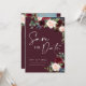 Boho Burgundy och blommigt Spara datuminbjudan. Denna inbjudan kännetecknas av boho burgundy och ro och blommor med två moderna högklassigt typsnitt som formar trenderna för dagens och morgondagens festliga händelser.