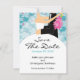 Meddela ditt framtida bröllop med vårt trendig Tropical Turcos Blue Hibiscus blommigt bride & groom Spara datum meddelande inbjudningskort... Lägg bara till din bröllop-information så är ni redo att gå! Matchande porto frimärke & inbjudningskort för möhippan finns i vår butik. ©Jessica Weible