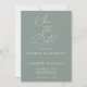 Den här sidans grönt Spara datumkortet har en minimalistisk vit bakgrund med grönt. Fullt anpassade med namn, data, plats, färg i bakgrunden osv. Om du vill ha mer detaljerad anpassning klickar du på länken Anpassa ytterligare. Matchande objekt i bröllop finns också i den här samlingen.