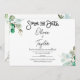 Fira din saga i kärlek med den här vismska Grey Spara datuminbjudan, perfekt för intima element och trädgårdsbröllop. Den har en fin vattenfärgsblad och en lekfull typografi och ger en charmerande, personlig beröring. Anpassade att passa din drömdag.