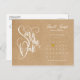 Den här söten sparar datumkortet med en kalender och söt guld kärlek med ett hjärta som belyser ditt speciella datum med en strålande kraftbakgrund. På motsatt sätt kan du spara datuminformationen, inklusive webbplatsen bröllop, med returadress och utrymme för mottagarens adress. Designad av Thisisnotme©