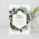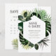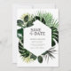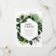 Det tropiska bröllop spara datum har en fetstilt vattenfärgad grön gräns. Perfektens val för alla som planerar ett destinationsbröllop. Redigera kalendern på baksidan så att den återspeglar din speciella dag!