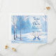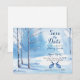 Vattenfärgen träd och kanin bröllop spara datum i vinter-skogslandskapet. Det här blå och vita vinterbröllopet, förutom datumet är perfekt för ett vinterbröllop. I meddelandet om vintertid i träd bröllop spara datum finns ett vackert snöslandskap med träd, snö och kaniner. Vinterbröllopet, förutom datumet, har en rustik känsla utomhus. Det är perfekt för ett bröllop i ett skogs-, ängs- eller bergsrekreationsområde på vintern. Ytterligare anpassningar är möjliga (typsnitt, typsnitt färg, bakgrundsbild färger osv.) genom att klicka på "klicka för att anpassa länken ytterligare" under anpassningsalternativen. Kontakta designern om du vill att andra matchande objekt ska följa med den här designen som inte redan ingår i samlingen.