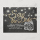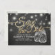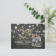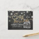 Bröllop spara datum vykortsmallar - Elegant Faux guldfil Spara datumskript och Vintage Mason Burk String Ljus med Grunge Black Chalkboard Background. En Perfekt för din stora dag. Alla textstorlekar i stil, färg, kan ändras för att passa dina behov!