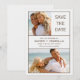 Det här meddelandet innehåller ord "spara datumet" i hörnet av den övre högerna i brunt, dina kommande uppgifter om bröllop i mitten och visningar två av dina favoritfoton.