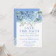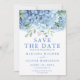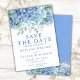Spara datumkort Blå Hortensia Blommig Bröllop Inbjudningar