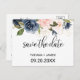 Den här krävande fall-blommigten sparar datumkortet som perfekt för ett tropiskt bröllop. Utformningen skildrar handritade , mörk blått och marina vitmiblommor, inspirerande elegans, klass och naturskönhet.