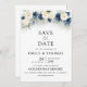 Spara datumkort för marinblått och Vit ros Spara Datumet