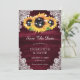 Burgundy rustik blommigt bröllop spara datum-kort med solblommor på träbakgrund, med vit blommigt snöre och ljus. Matchande objekt är tillgängliga.