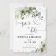 Spara datumkorten. Den här snyggten och eleganten sparar datuminbjudan med en fantastisk, handmålad vattenfärgsgrej. Sök efter matchande objekt i Blommigten Watercolor Eucalyptus Greenery_HB1 Collection.