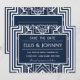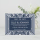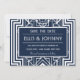 De här sparar datumet ett intrikat geometriskt ram, geometriskt mönster, en marin blå och vit palett för färg och andra stilistiska detaljer som alla inspireras av Art Deco och de nära 20-talen. Du kan anpassa exempeltexten till fält.