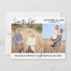 Använda våra bröllop spara datum-kort med två foton för att ge dina gäster information om att spärra av ditt bröllop-datum i förväg. Tips! Om du behöver ändra ordalydelsen som finns i skriptteckensnittet kan du gå till avsnittet "Anpassa den här mallen" och sedan klicka på "Anpassa ytterligare" i grund. Du kan radera vilken text som helst som du vill använda i bilder och lägga till en egen text i ställe med hjälp av knappen "Lägg till text". Se till att checka ut vårt stora urval av foton spara datumkort, vykort och magneter genom att bläddra i vår Bild Spara datumsamling!