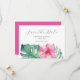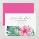 Öka din födelsedagskalkyl med våra Spara datumkort, med en sofistikerad vattenfärg gräns på tropiska blommor och monstera handflatan löv. "Spara datumet" presenteras elegant i kol-grått mot en pristinvit bakgrund. Anpassa med informationen med hjälp av fälten för den angivna mallen. Kortets baksida har en slående och levande rosa som kompletterar framdesignen. Passar för alla milstolpar, oavsett om det är en svensk 16, 40, 50 eller 60 firande. Utforska fullt födelsedagssamling och samla mer inspiration på www.zazzle.com/dotellabelle. Med den distinkta konsten för blommigt av vattenfärg och Victoria Grigaliunas utformning.