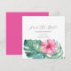 Lägg märke till att du fyller milstolpen i stil med den här unika kvadraten och spara datumkorten! De har en elegant överst gräns av vattenfärgade tropiska blommor och monstera handflatan löv, och de utsöndrar tropiska charmer. "Spara datumet" är smakligt typifierat i kol-grått mot en skarp vit bakgrund. Anpassa informationen med hjälp av fälten Mallar. Den omvända sidan skryter med en matchande vibrerande rosa färg för ett extra-popup. Passar för söta födelsedag på 16, 40, 50, 60 eller någon annan ålder i firande. Utforska hela födelsedagstemat och fler idéer på www.zazzle.com/dotellabelle. Upplev Victoria Grigaliunas unika vattenfärgsdesign för blommigten.