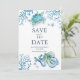 Den här födelsedagen sparar datumkorten med en boarder av blå havslevande varelser. Orden "Spara datumet" är typset i marinblått över en skarp vit bakgrund. Använda mallens fält för att lägga till anpassningsbar. Kortet återgår till ett matchande färg. Ett charmerande val under havet 1:a födelsetalet. Om du vill se hela födelsedagstemat och om du vill ha fler idéer går du till www.zazzle.com/dotellabelle Unik vattenfärgsgrafik och design av Victoria Grigaliunas.