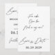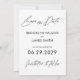 Bröllop spara datum-kort med enkelt skript med lustig handskriven text på framsidan och utbytbar text på baksidan - du kan ändra datum för namn och bröllop. Kortet är tryckt på vit bakgrund.