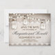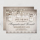 Rustik vintage-överlappning sparar datumkorten med Mason burk hängande på ljus.