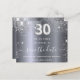 En elegant Spara datumkortet för ett 30års födelsedag party. En modern faux silver tittar bakgrund, dekorerad med faux glitter damm. Anpassa och lägg till datum och namn/ålder. Texten: Spara datumet skrivs med ett stort trendig-handskript i stil. Nummer 30 med ett stil-teckensnitt med ballong.