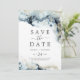 Att rädda datumkortet är en perfekt för ett modernt bröllop. Den moody och elegant utformningen har mörkens marinblått och en dammig skifferblått vattenfärg med stänk i guld glitter, vilket skapar ett rymden och nattens himlar känsla.