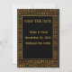 Lägg märke till din stora dag i stil med det här afrikanska bröllop spara datum-kortet. Det här kortet har en slående guld-inspirerad design och en djärv svart bakgrund och blandar perfekt ihop kulturell tradition med modern elegans. Idealisk för afrikaninspirerat, traditionellt och formellt bröllop, det är ge gäster och tidigt glimtar från firande till kom. Fullständigt anpassade för att inkludera namn, datum och plats för bröllop.